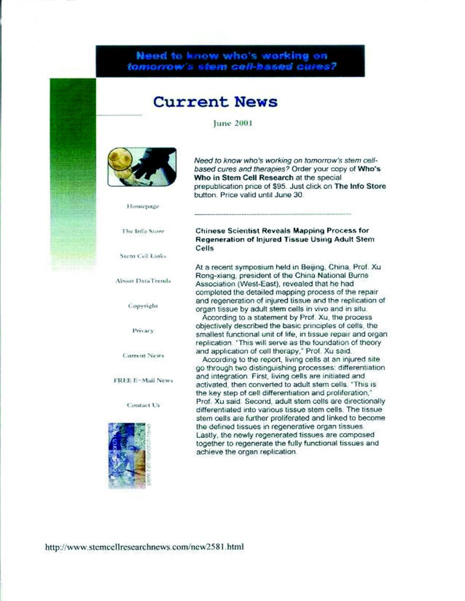 SOURCE: Stem Cell Research News, June 2001